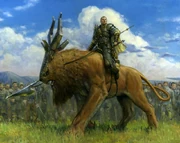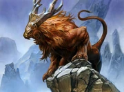 The felidar is a large feline beast with a bony face and prominent antlers. They can be trained and ridden.
